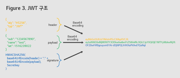 JWT의 구조는 3부분으로 나뉜다. header, payload, signature