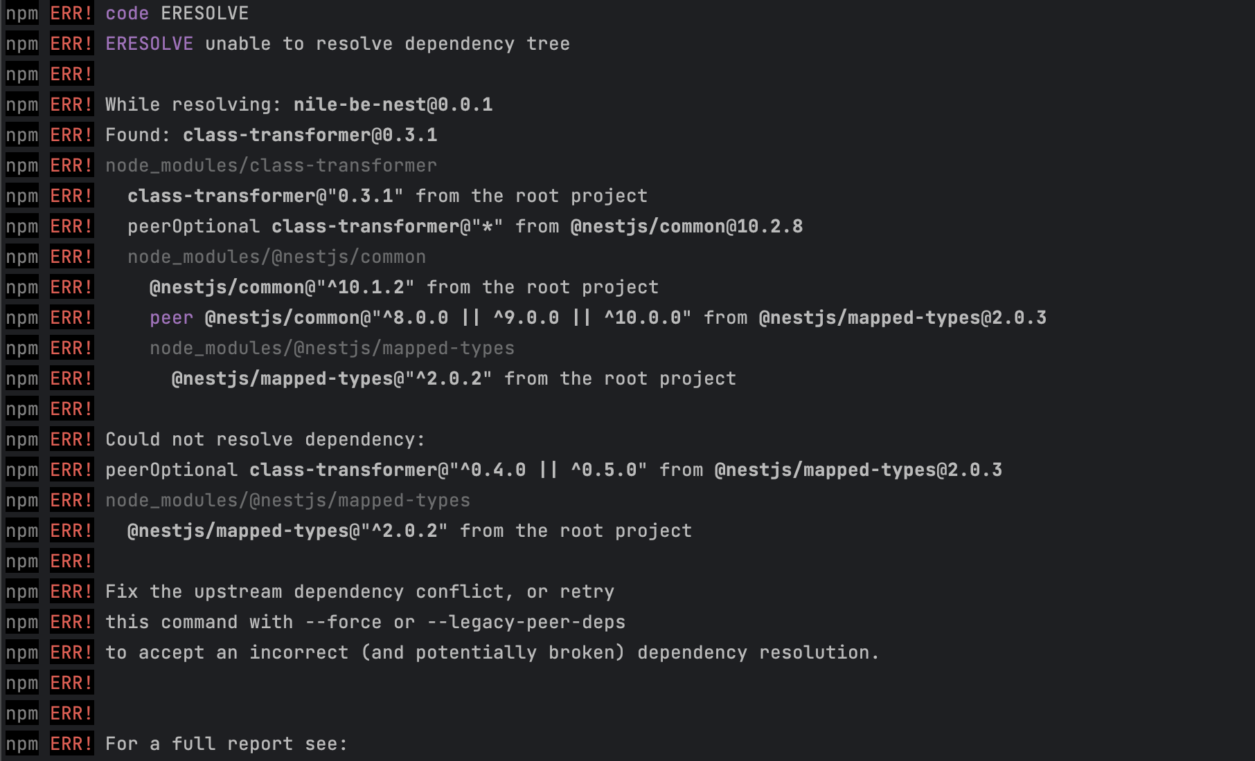 npm ERR! code ERESOLVE