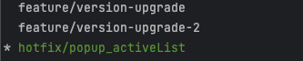 그래서 이 브랜치를 삭제하기 위해서 한 단계 위 브랜치인 develop 브랜치로 checkout을 해서 hotfix/popup_activeList 브랜치를 삭제할 수 있었다.