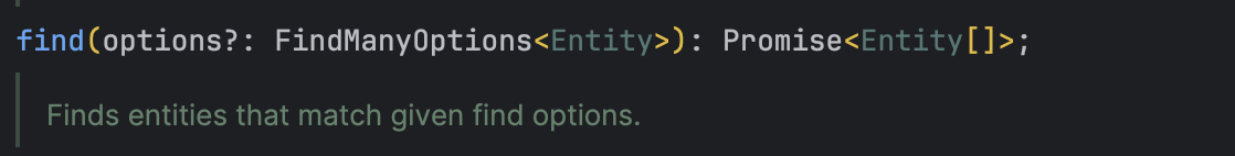 Entity의 배열 형태를 반환할때 Promise를 그대로 반환해서 await를 쓰지 않아도 된다는 것이다.