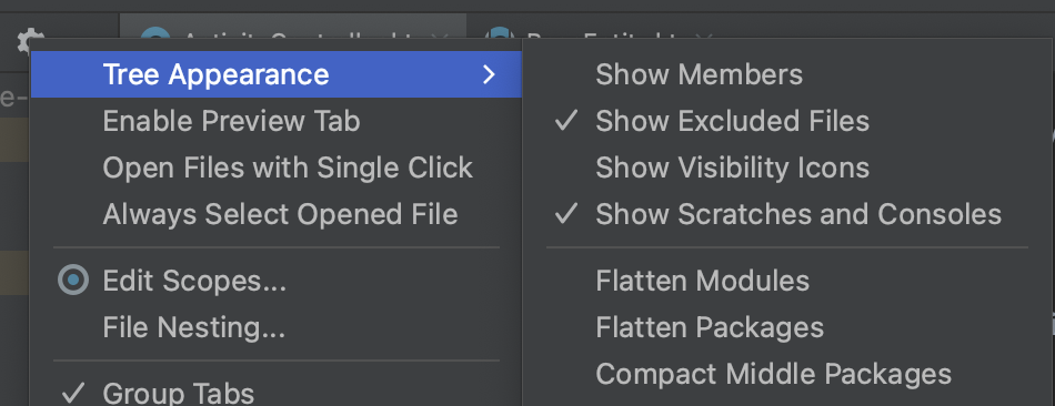 Tree appearance > Compact Middle Packages 체크 해제하면 된다.